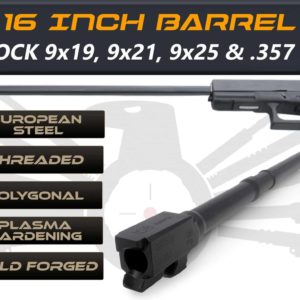Glock Gen 5 Long Barrels 16" Made By IGB Austria - Match Grade Polygonal 16" Threaded Barrel For 9x19, 9x21, 9x25 And .357 Sig Caliber
