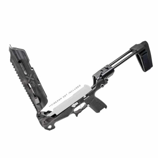 The X01 is a drop-in PDW upgrade for the Sig Sauer? P320? / P250? / M17 / M18 series of firearms that provides enhanced capabilities such as a vertical rear 1913 rail to attach a SIG? MPX compatible arm brace or buttstock. The X01 enhances the original firearm?s manual of arms with its integrated charging handle, which provides an ?HK?-style? downward release when the left-side handle is locked to the rear. The fore-end of the weapon features three M-Lok? slots, two of which come standard with specially designed hand stops that match the module?s contours. Made in the United States of America.