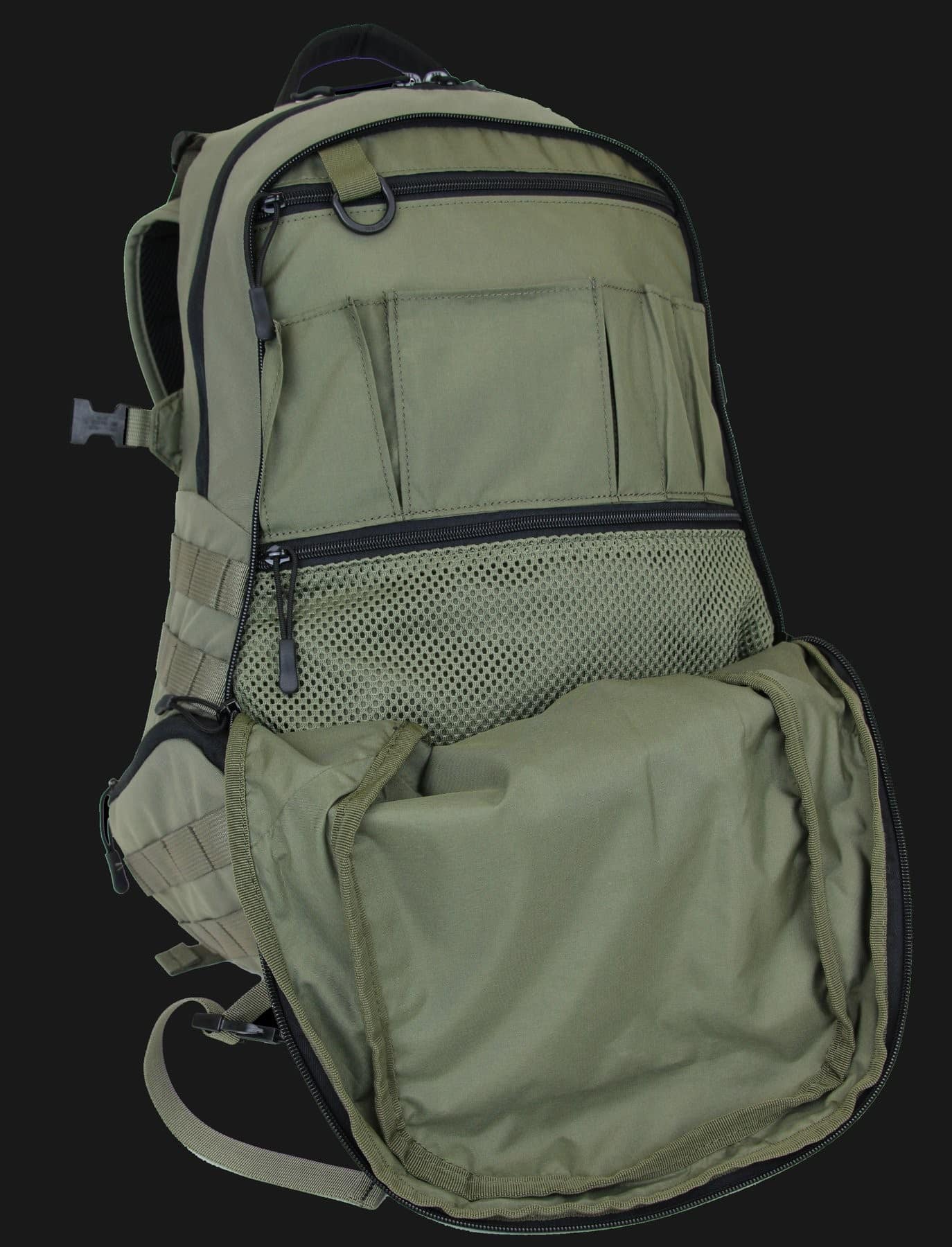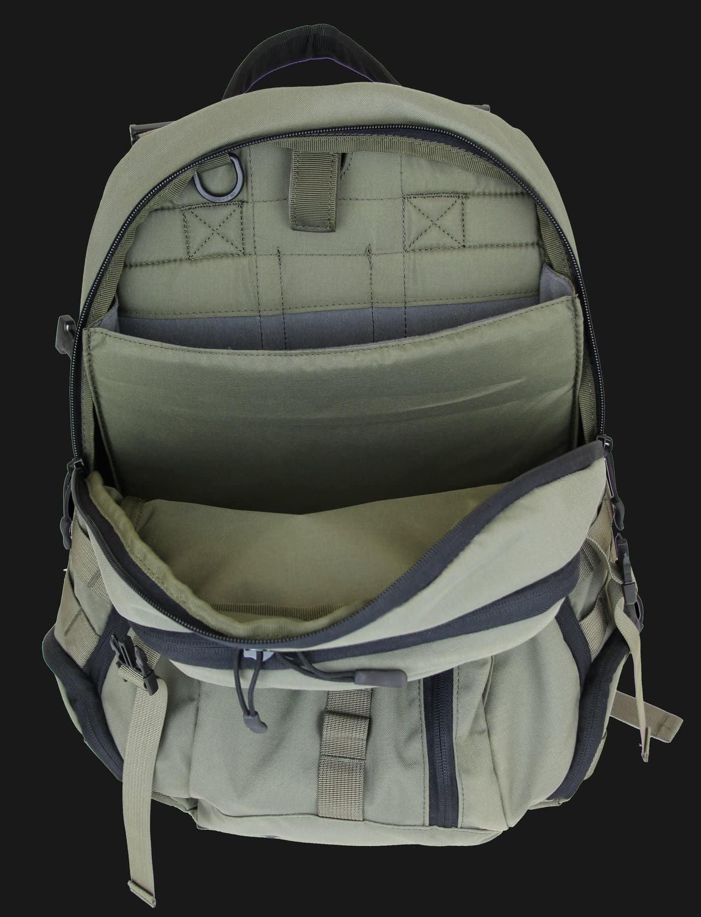 Our newly designed assault pack is slim yet roomy with a main top zippered opening compartment of 15 liters. A secondary compartment also with a top opening zipper offers additional 5 liters of storage. In addition, there are one front pocket and two side pockets for small items. The side pockets are easily accessible also when the bag is on the back. An inner pocket within the main compartment can be used for either a laptop up to 13? or a hydration bag with 2 top openings for the water tube. Outer MOLLE webbings provide the option of attaching compatible pouches. The padded shoulder straps are detachable and allow use of the bag with two straight straps or any one diagonal strap according to the comfort of the user. The back of the bag is cushioned for better comfort.