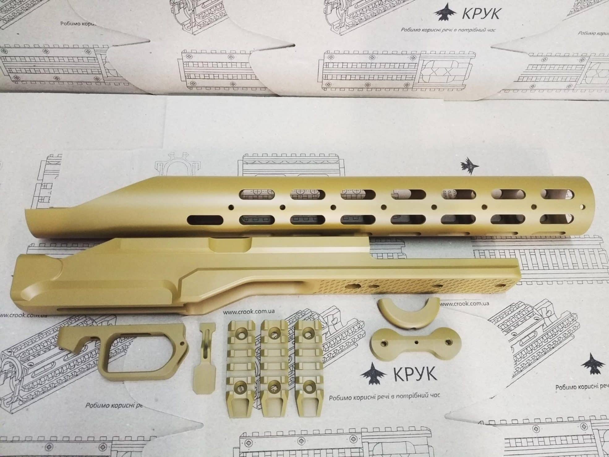 Please note that the kit only includes the chassis, handguard and 3 Picatinny rails.