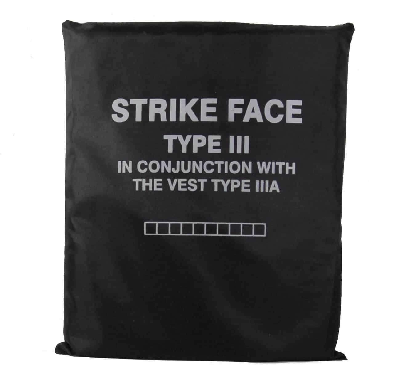 Strong, Multi-hit plate. Supplies level III (3) protection in conjunction with level III-A bulletproof vest.