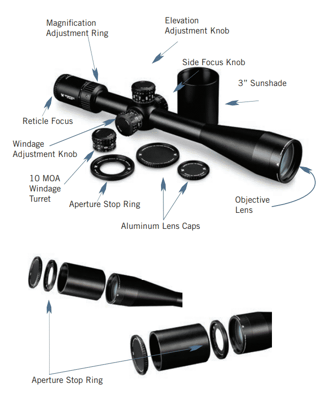 | ASR (Aperture Stop Ring) | Broadens the depth of focus allowing the shooter to more easily observe down range mirage and other wind indicators while keeping the target in focus. |