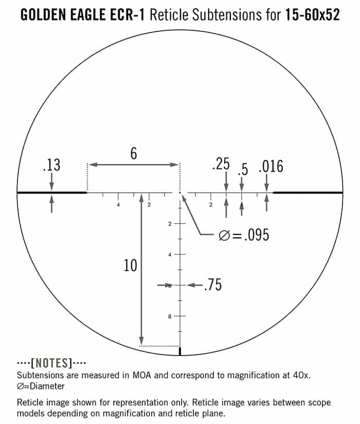 Subtension detail for Golden Eagle HD riflescope with ECR-1 MOA reticle.
