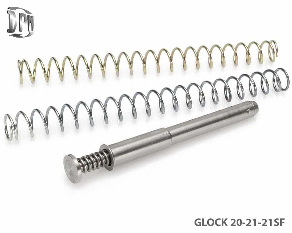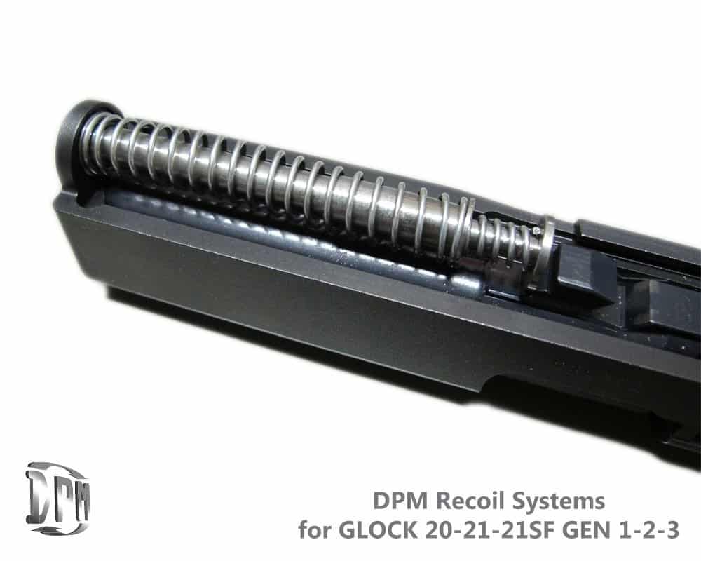 This system works due to the multi spring intricate rod (three springs) and controls the functionality of the gun. The third spring which is contained within the rod controls the movement of the slide so it never rams on the frame. Also accompanying this system are two separate springs so the shooter can fine-tune the weapon for his/her personal standards.The longer spring (more coils) is stronger and has a heavier pound rating than the shorter spring.