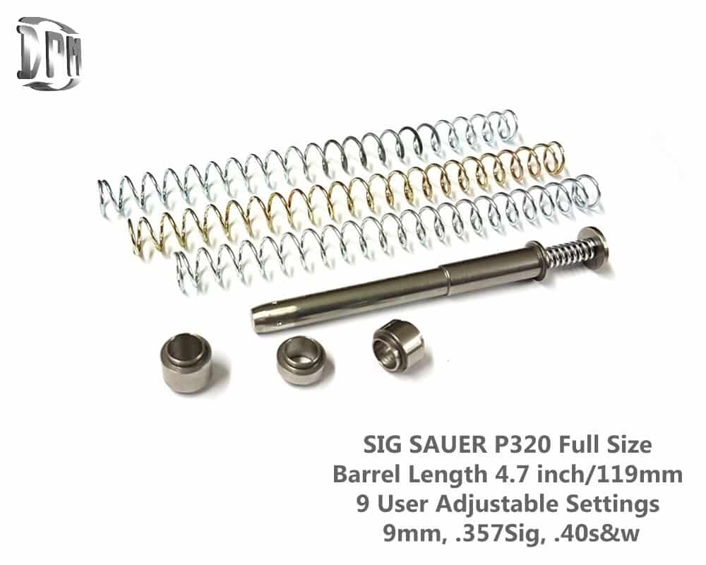 Also accompanying this system are three spacers and three separate springs so the shooter can fine-tune the weapon for his/her personal standards.The longer spring (more coils) is stronger and has a heavier pound rating than the shorter spring. The spacers because of the different length change the total force of the recoil system (slide full open position).