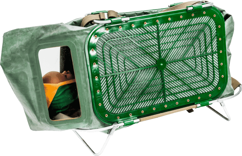 Originally designed in 1985 as a solution for the children and grandchildren of top-ranking Soviet officials, this child respirator acts like a hermetically-sealed chamber?not unlike an incubator?that filters out airborne contaminants, toxic gases, and radioactive fallout.