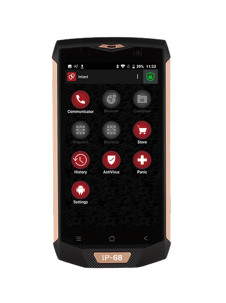 Custom OS - IntactPhones are powered by INTACTOS, a highly secured custom OS made on top of Android 9. INTACTOS contains its own application center which allows you to download and install apps that were verified by Communitake itself.