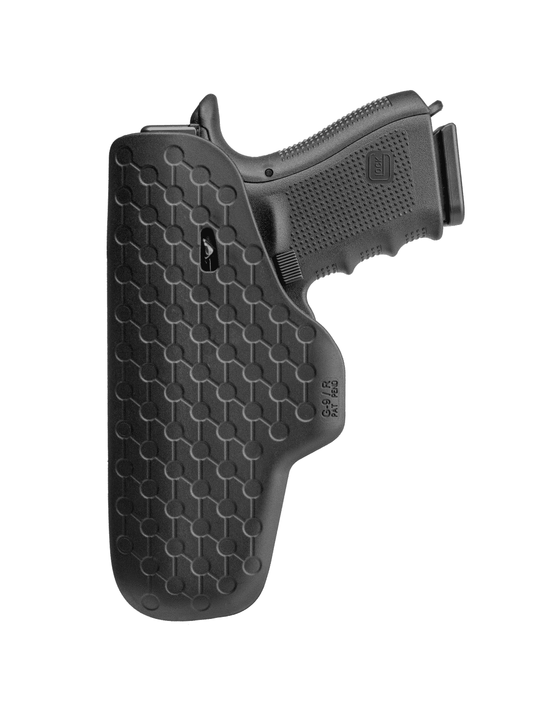 The backing is also rounded for increased comfort and textured to prevent the FAB Defense holster from sliding in any direction. The backing also features a combat cut that allows for a full grip of the gun for a rapid and safe draw and quick and stable weapon presentation.