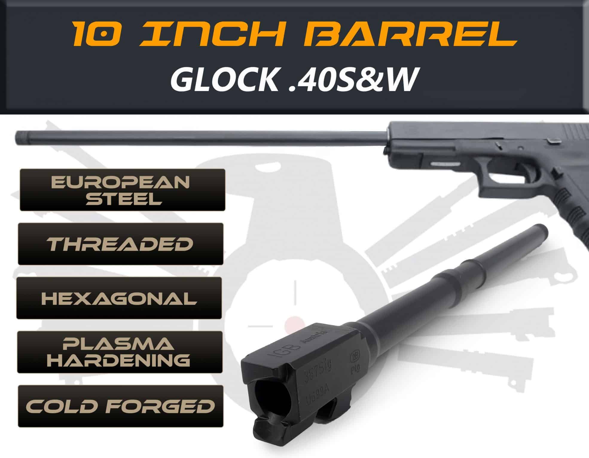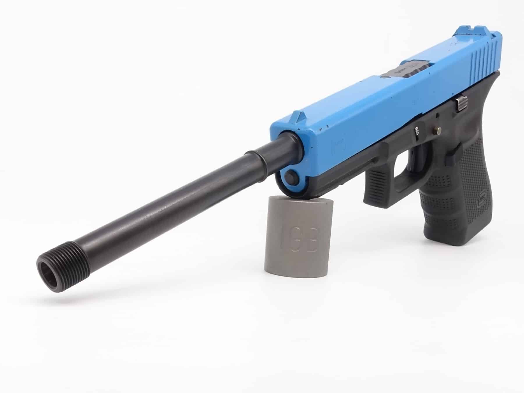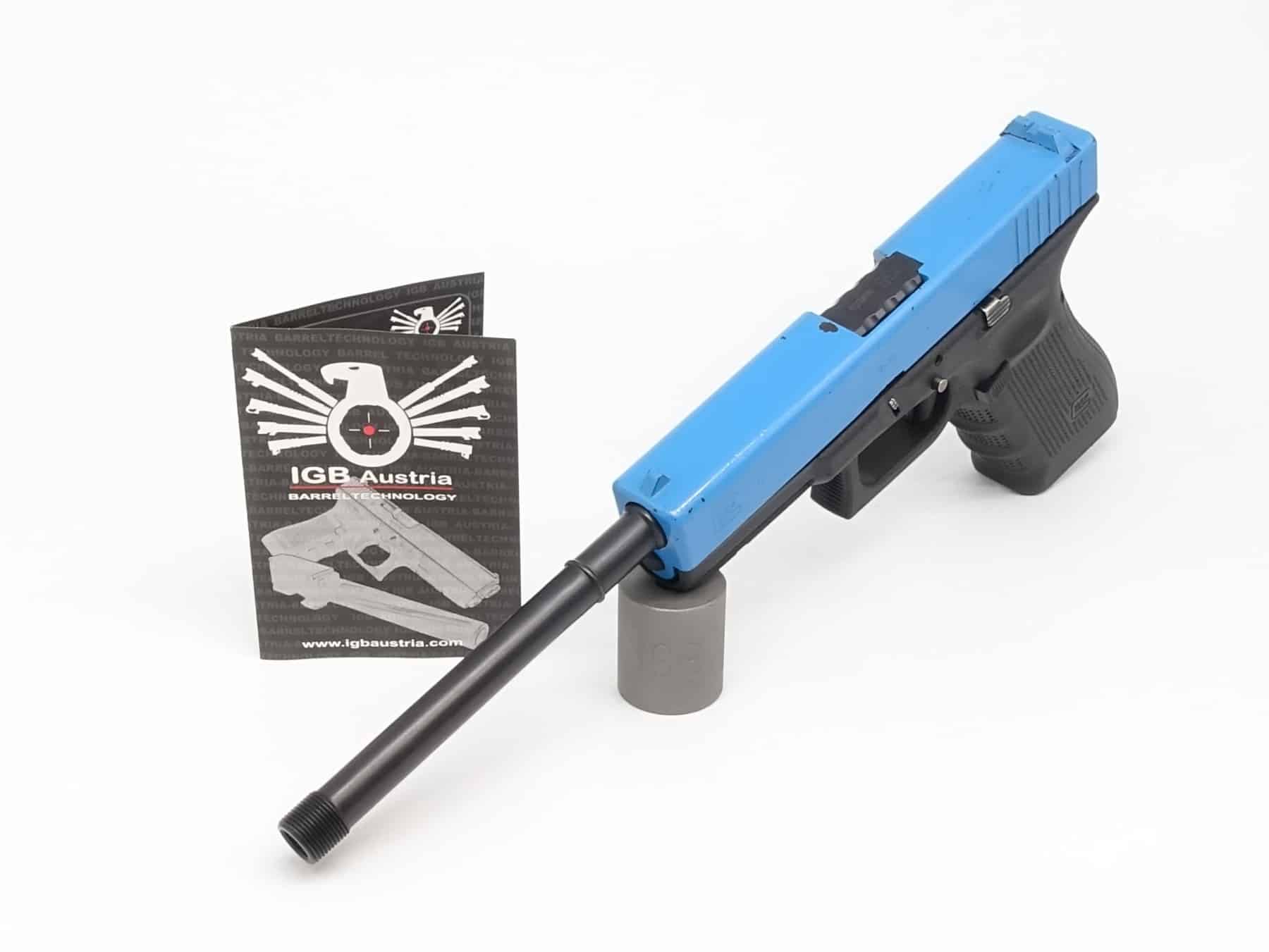 [/vc_column_text][vc_column_text]The Impulse System was developed to eQualityuip pistols, which dispose of a Browning type lockup (i.e. Glock, Colt, CZ?) with barrels up to 42 cm (16") length. Moreover, these units offer for the first time the advantage of using compensators or longer match barrels in combination with target loads.?Abb. Glock 17 with IGB 10" barrel and matching shroud. [/vc_column_text][vc_single_image image="100061" img_size="medium"][/vc_column][vc_column width="1/2"][vc_column_text]