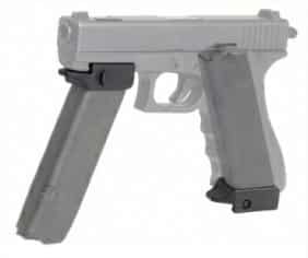 Our GMF-G Glock Magazine Frame Picatinny Attachment mounts spare magazine to your glock underside front accessory rail where it serves both as comfortable foregrip and as spare magazine.