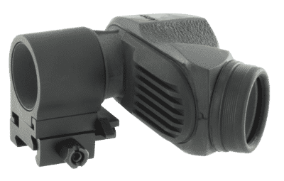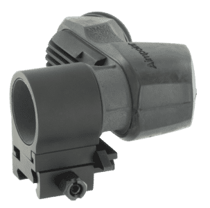 The Aimpoint CEU rotates a full 260? allowing the operator to safely look around either right or left-hand corners, up staircases or down tunnels from almost any angle. To mount the CEU, use the Aimpoint TwistMount base and choose the CEU ring which allows co-witnessing with the Aimpoint sight.