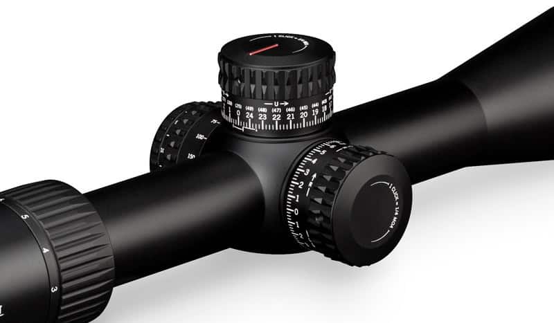 | Built-In Accuracy Features | Matching (MRAD or MOA) turrets and reticles facilitate fast and accurate shooting at extended ranges. The patented fiber optic Radius Bar visually assists tracking turret rotations.?US Patent 7,937,879 |
