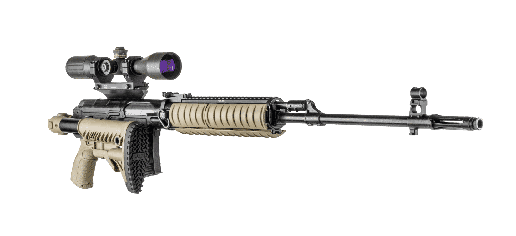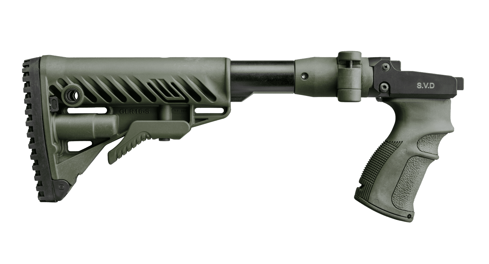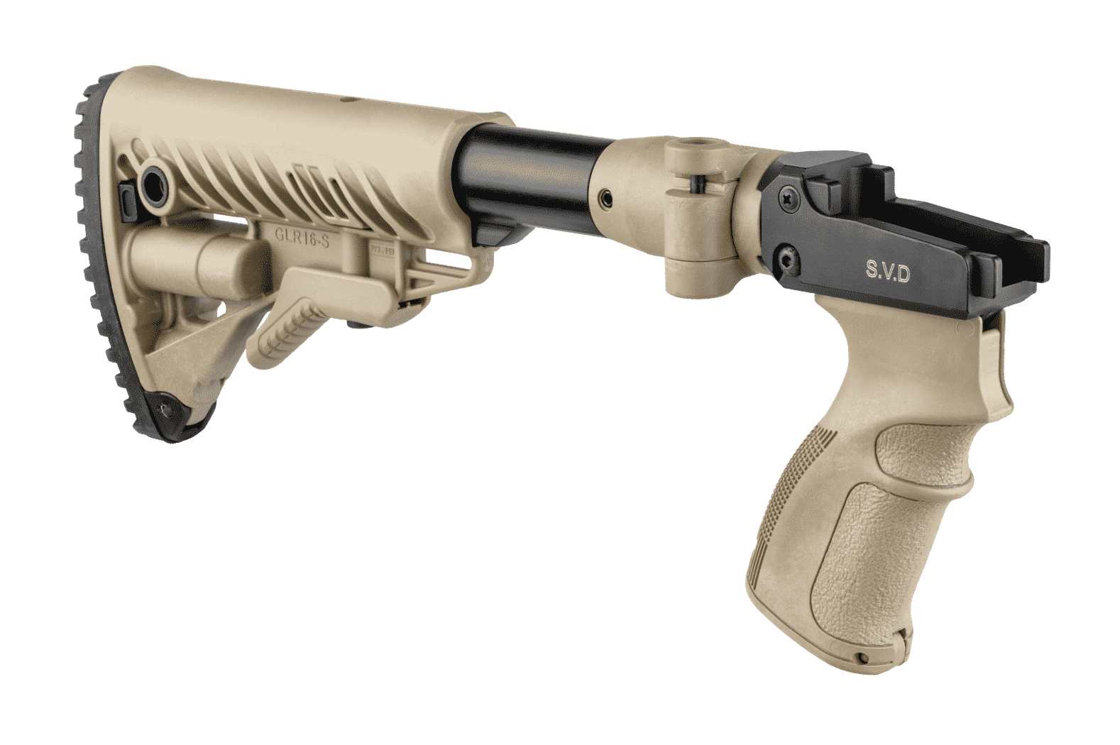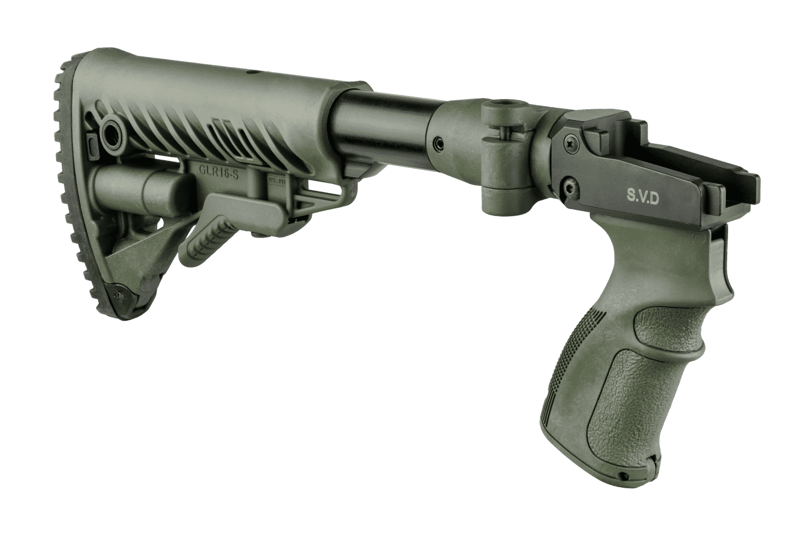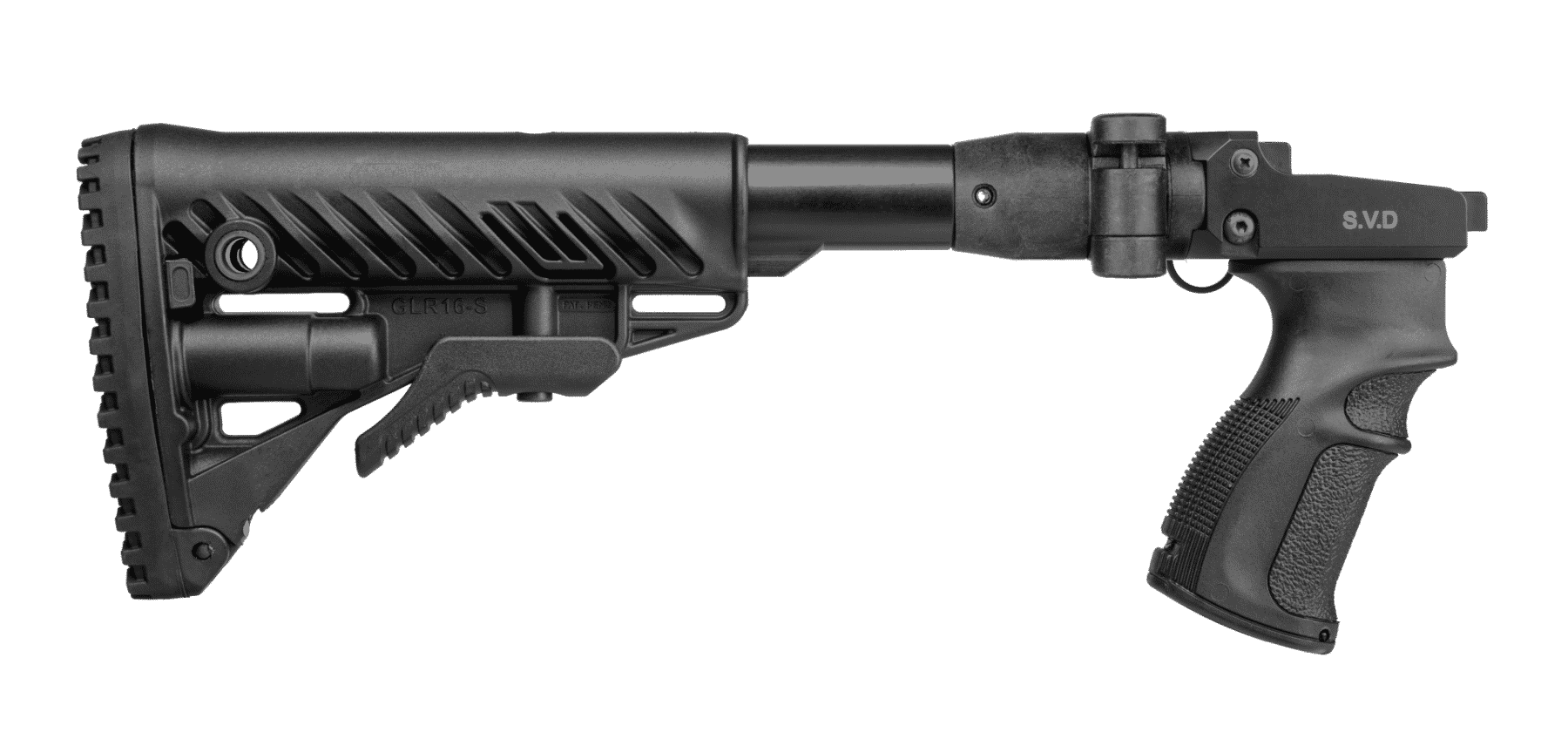 The M4 SVD is a combined folding and collapsible buttstock system with ergonomic pistol grip made for improved trigger operation, ergonomics, and overall performance of the Dragunov Sniper Rifle (Snayperskaya Vintovka Dragunova).
