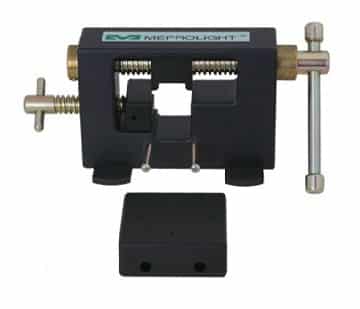 3)??Select the proper support block height by experimenting with the various positions, being sure that the pusher ears will not contact the top of the slide, once it is located and supported by the support block. Then tighten the clamp to secure the slide in the fixture. NOTE: You may want to put some thin leather on the slide clamp and the opposite channel, to provide a better contact surface and not allow the slide to slip when removing and installing the sights.