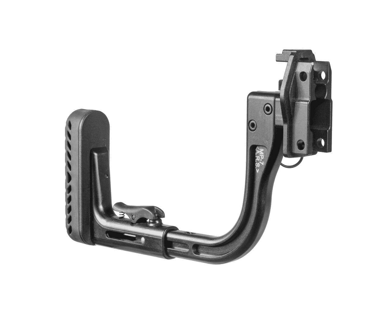 Our New ARS Helmet Visor Stock is an extremely durable, tactical folding and collapsible Helmet Visor Stock, enables faster eye to sight alignment, designed specifically for visored helmet operations. Convenient for tactical concealment.