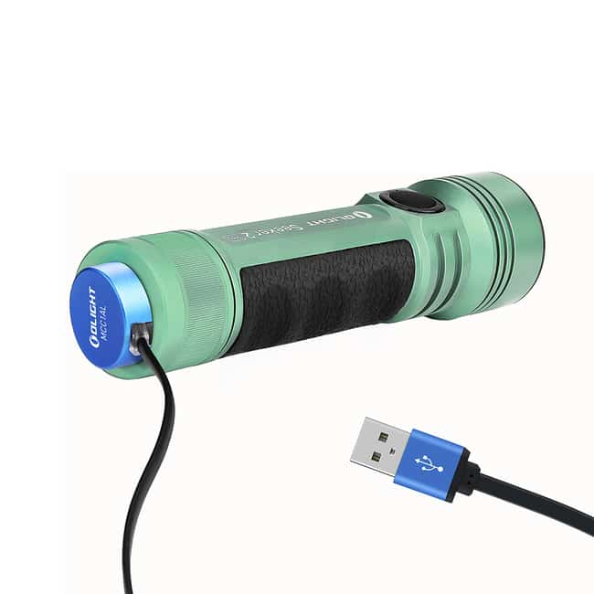 The Seeker 2 pro is a powerful, rechargeable side-switch LED flashlight. Powered by a single, maximum capacity, (5000mAh) 21700 customized lithium rechargeable battery, that helps this light deliver a maximum output of 3200 lumens. It uses high-quality LEDs paired with a TIR optic lens, providing a perfect medium and close-range illumination experience. The Seeker 2 pro features a large side switch located near the head of the light for comfortable thumb operation and indicators on both sides of the switch clearly display the battery power and brightness level. With milled finger grooves and dermatoglyphic silicone, the Seeker 2 pro is ergonomically designed to be extremely comfortable and provides a non-slip grip. The Seeker 2 pro includes a 3.9 ft long 1A magnetic USB cable (The MCC1AL is compatible with OLIGHT S, M, and H series). The provided L-dock can be attached to or fixed on a wall close to a power source for quick and easy access. Compatible with most USB power sources, the magnetic charging cable is convenient to use, making it an ideal illumination kit to be used at home, outdoors, or while on duty.