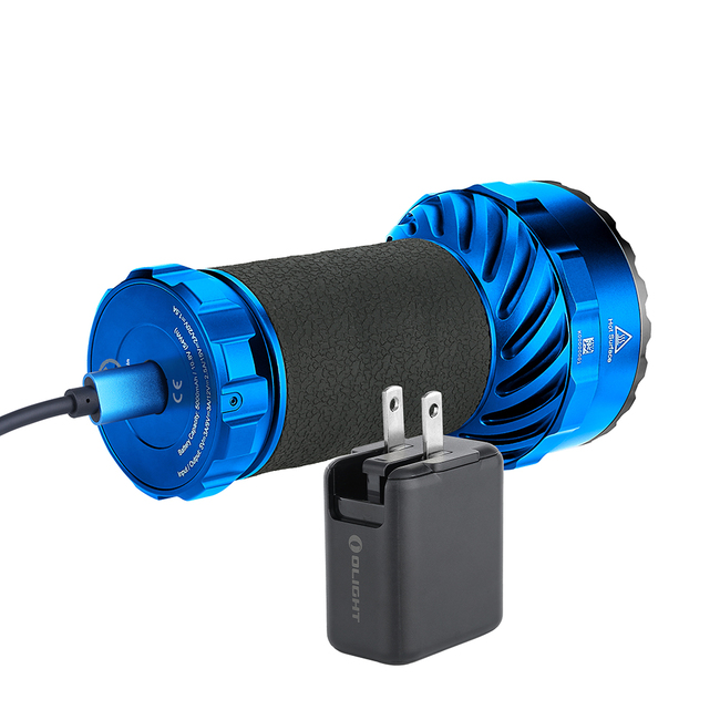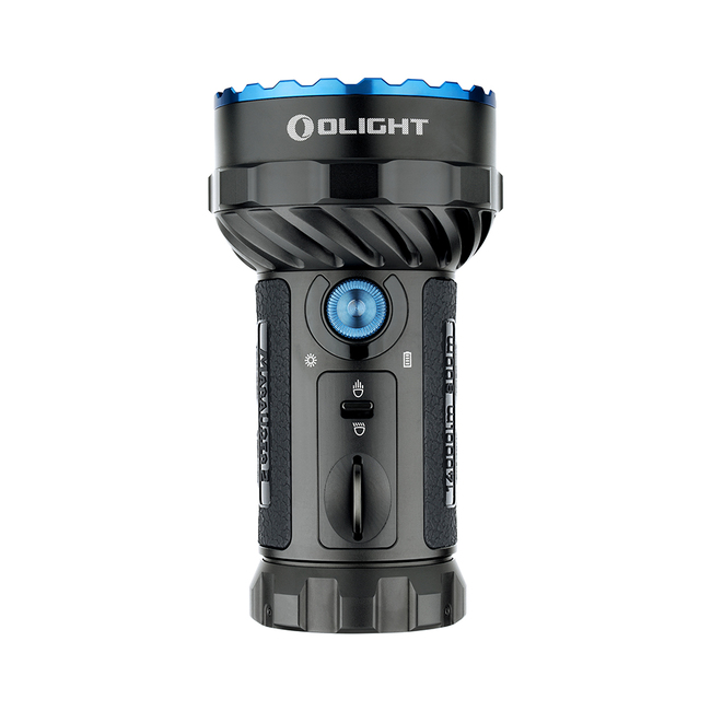 The Marauder 2 is an upgraded version of the X7R Marauder. A large LED has been added in the center of the head to enable an 800-meter spotlight beam, and 12 small LEDs circle the edge to create a 14,000-lumen floodlight beam. It has two switches on the body. The toggle switch at the middle is quick to select either spotlight or floodlight, while the upper rotary knob is intuitive to adjust brightness levels. Surrounding the rotary knob switch are indicators to reveal the brightness level, the battery level, and the charging status. The flashlight features a thermal sensor, a proximity sensor, and cooling fins to ensure safety in case of overheating and obstruction. Powered by a built-in 54Wh rechargeable battery pack, it enjoys an extended runtime and may serve as a power bank to charge other digital devices. Its upgraded USB-C charging port allows fast charging and reverse charging, and is shielded by a port cover resembling aperture blades. Mighty like a beast and small enough to fit in one hand, the Marauder 2 is a great help to searchers, rescuers, rangers, hunters, and outdoor enthusiasts.