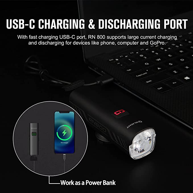 • RN 800 is a multi-functional and rechargeable bicycle light powered by a rechargeable battery with a maximum output of 800 lumens.