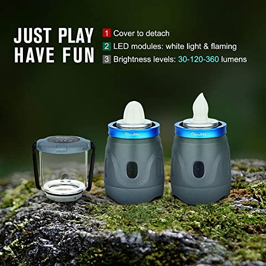 • ?Multi-Function?Featuring two interchangeable LED modules, the Olight hanging lantern allows you to switch between a standard white light or an ambient flickering flame for versatile illumination and fun,like camping,hiking,and parties.