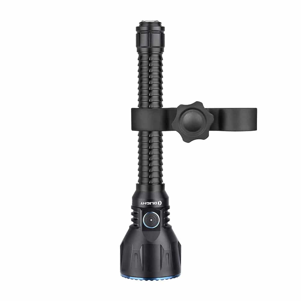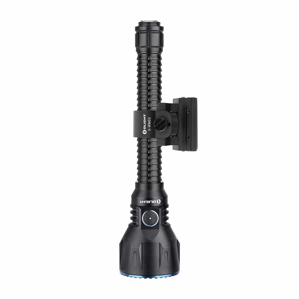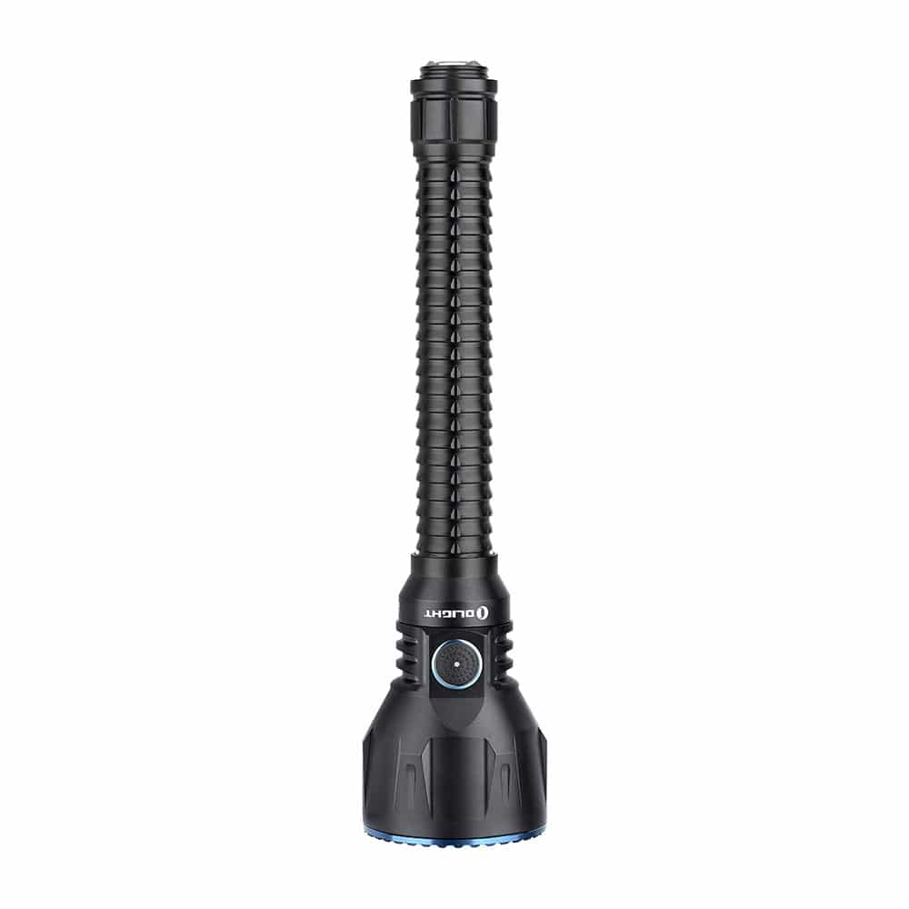 The Javelot Turbo is a dual-switch LED flashlight upgraded from Javelot Pro. Most of the great features of Javelot Pro are still there, including the throw, convenient side switch, integrated replaceable battery pack, power level indicator, and the 63mm bezel diameter. There are some new upgrades. The beam distance has been furthered from 1,080 to 1,300 meters. The two 5000mAh 21700 battery pack replaces the previous two 3500mAh 18650 battery pack. The signature 3-in-1 tail switch has been raised a little, just like that of Odin, to enable a more smooth tactical operation. As a result, now you can charge the product via a normal MCC3 charging cable, or lock it up with a ROD remote pressure switch. For sure, the Javelot Turbo is one of Olight?s best illumination tool for hunting or search and rescue.