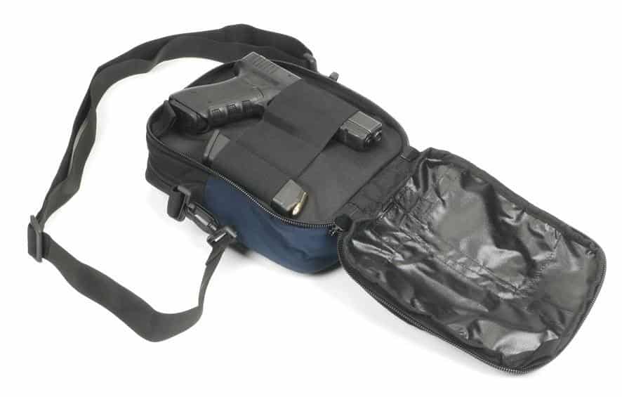 Small general office-purpose bag, with separate compartment for gun and magazine, with fast draw.