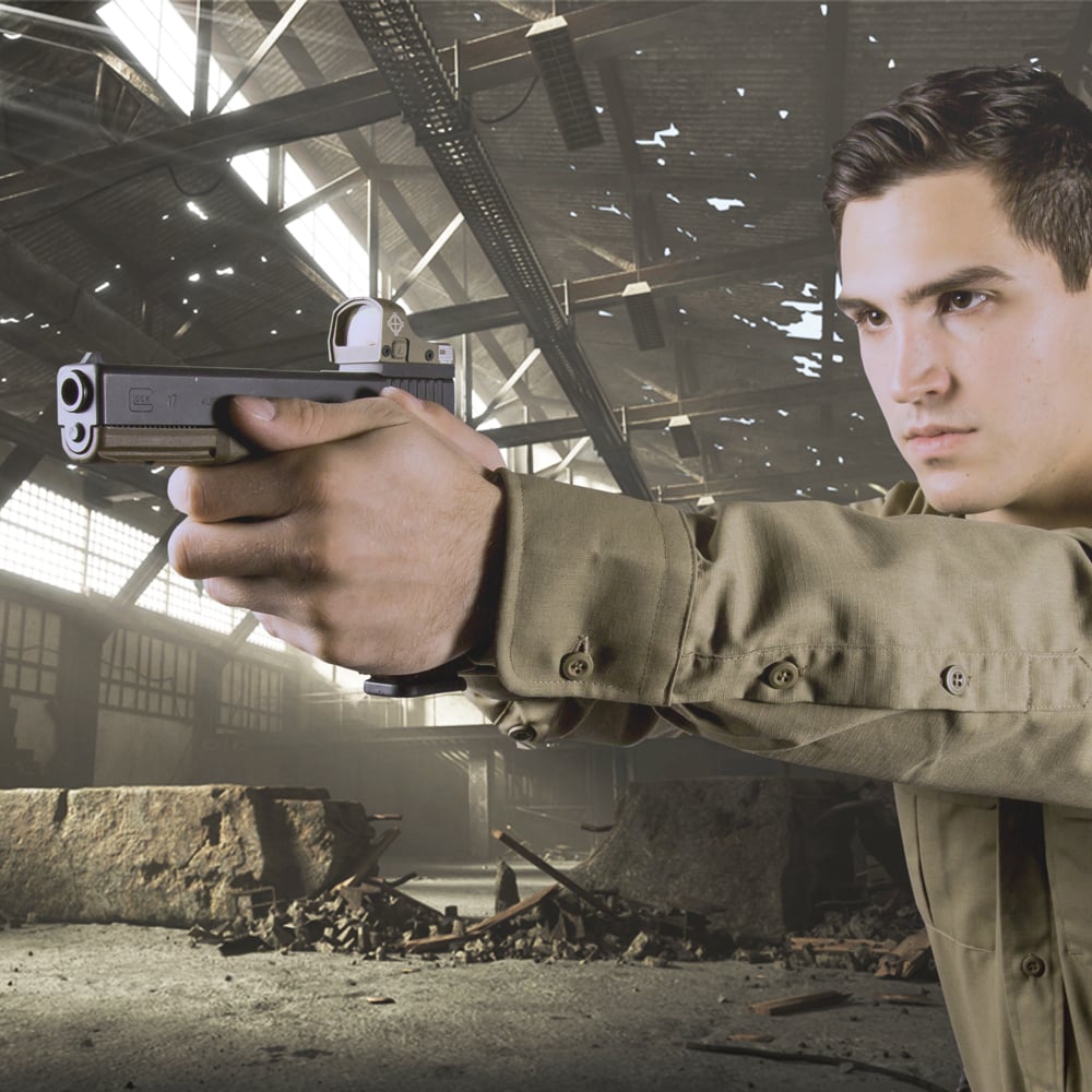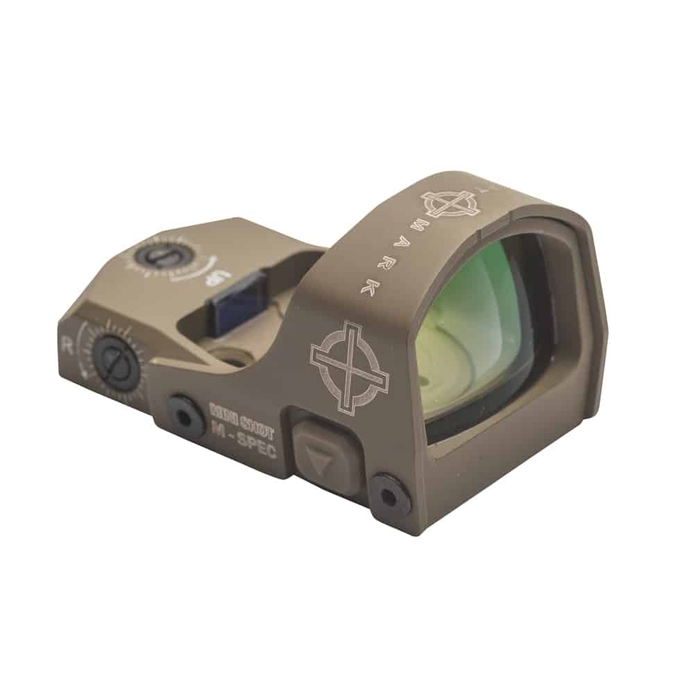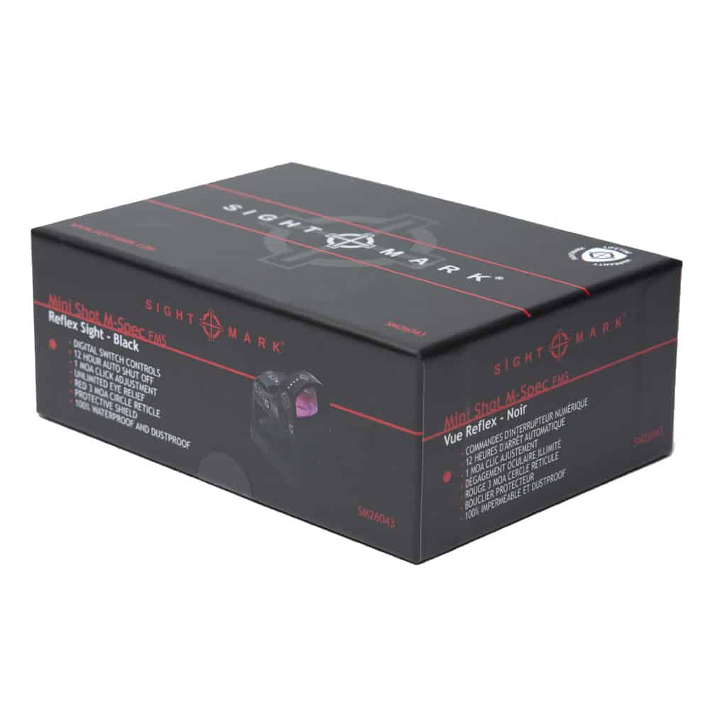 The compact Mini Shot M-Spec is a reflex sight designed to be used on shotguns, pistols and AR?s. Built from durable aluminum housing with a steel protective hood, the Mini M-Spec offers an IP67 waterproof rating. The M-Spec also features extremely low power consumption technology, windage and elevation click adjustments for easy zeroing, 10 brightness levels and an ambidextrous digital switch. Ideal for anything from target shooting to law enforcement applications, the 3 MOA reticle on the M-Spec has a 12 hour auto shutoff, giving shooters even more battery life. The sight comes with a low-profile mount and an AR riser mount.?