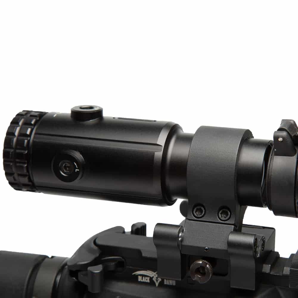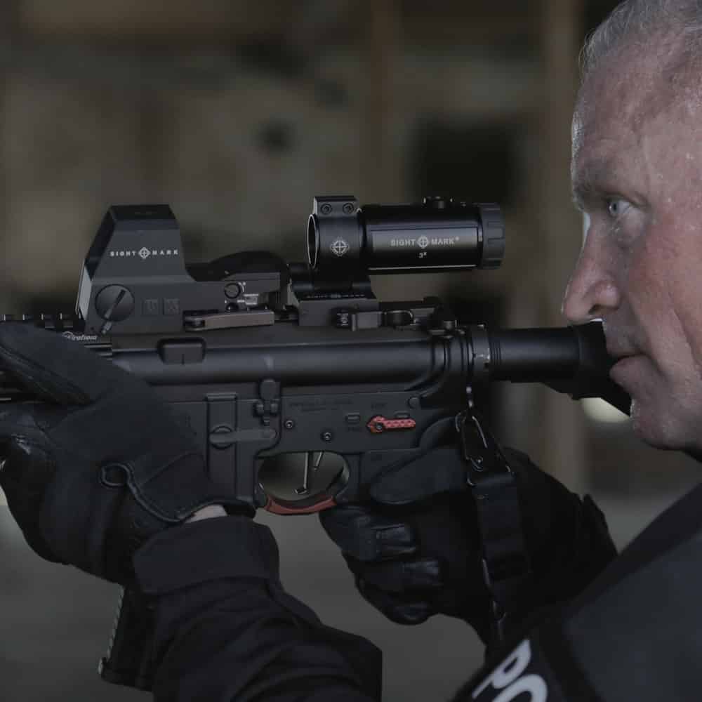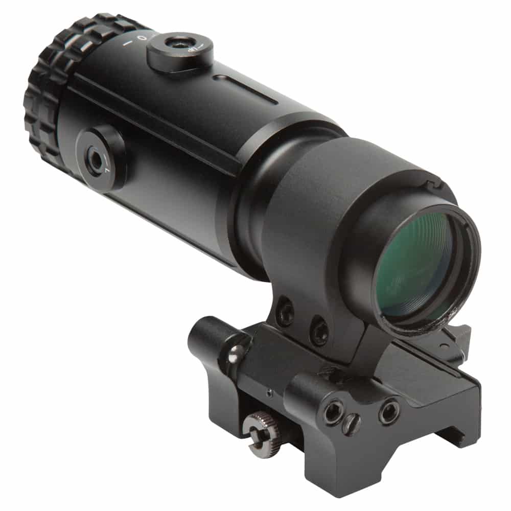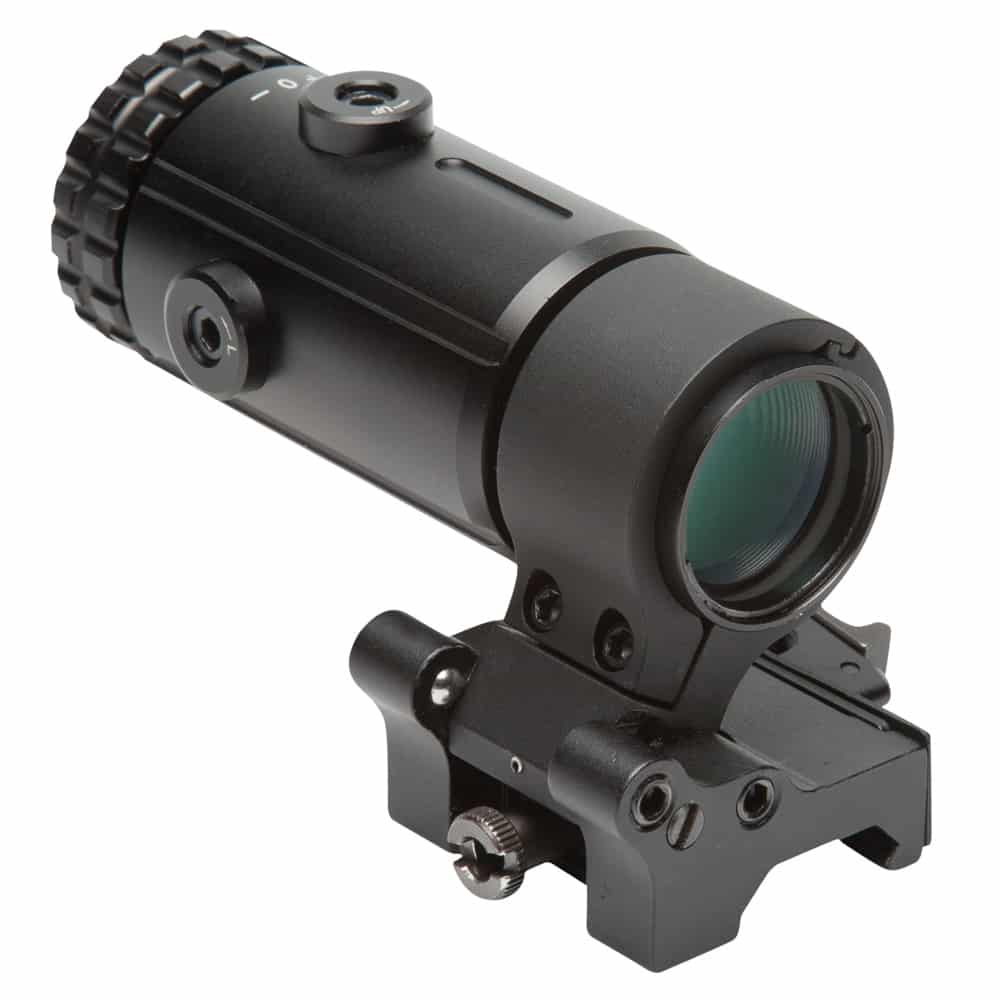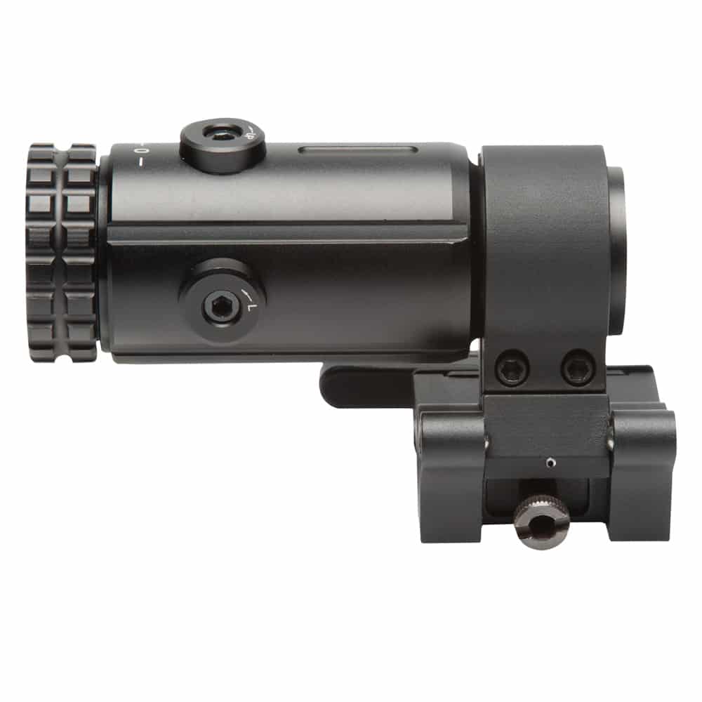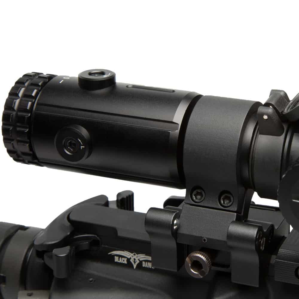 Helping shooters accurately extend the range of their reflex or red dot sight, new T-3 (SM19063) and T-5 (SM19064) Magnifiers provide 3x or 5x magnification in a straight tube optic system .7-.8? shorter than their predecessor. Perfect for AR platform firearms and specifically target shooting, 3 gun competitions and hunting applications, T-3 and T-5 Magnifiers feature a locking quick detach and flip-to-side mount, allowing rapid transition between the magnifier and accompanying sight.? An advanced, streamlined, low-drag design prevents the magnifier from snagging on vests and equipment. External windage and elevation adjustments make aligning the center of the magnifier?s point-of-view to the reticle extremely easy. Fully multi-coated optics improve brightness and resolution, increasing target and POI recognition. Both weighing less than 11 oz., T-3 and T-5 Magnifiers provide an effortless and effective way to increase optical magnification without sacrificing the advantages of a close quarters reflex/red dot sight.? These magnifiers are compatible with most reflex and red dot sights on the market, including Sightmark Element, Wolverine and Ultra Shot models. IP55 water resistant and recoil rated up to .308, Sightmark T-3 and T-5 Magnifiers include flip-to-side LQD mount, adjustment tools and a manual.?