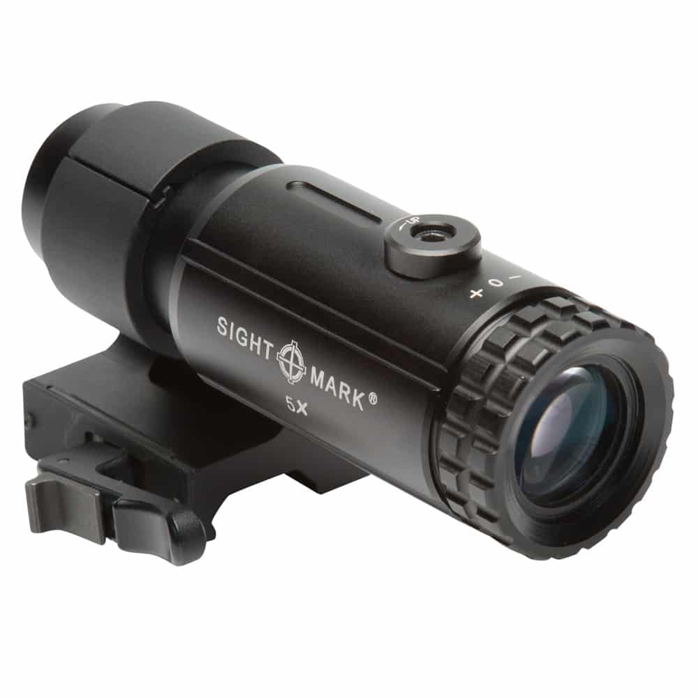 These magnifiers are compatible with most reflex and red dot sights on the market, including Sightmark Element, Wolverine and Ultra Shot models. IP55 water resistant and recoil rated up to .308, Sightmark T-3 and T-5 Magnifiers include flip-to-side LQD mount, adjustment tools and a manual.