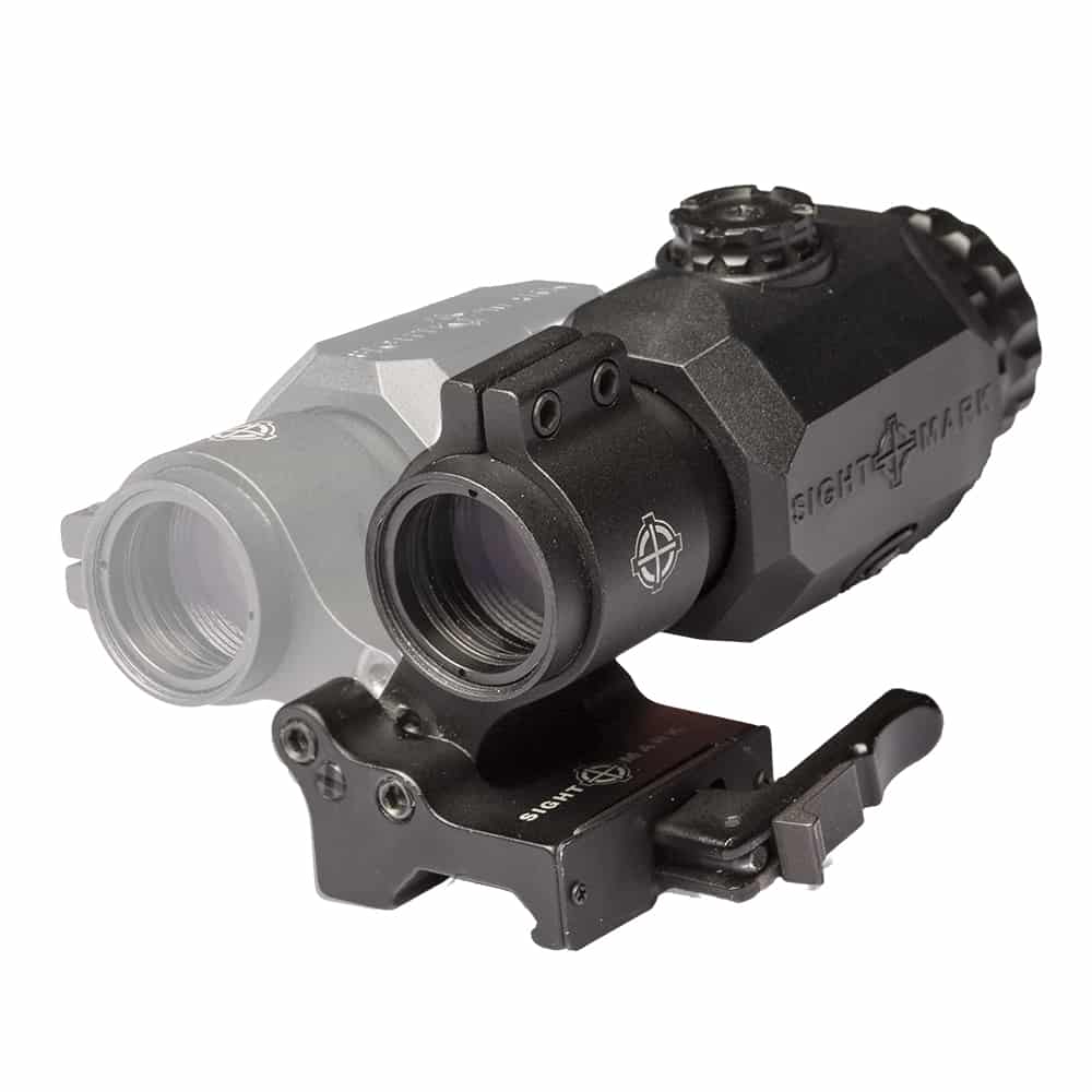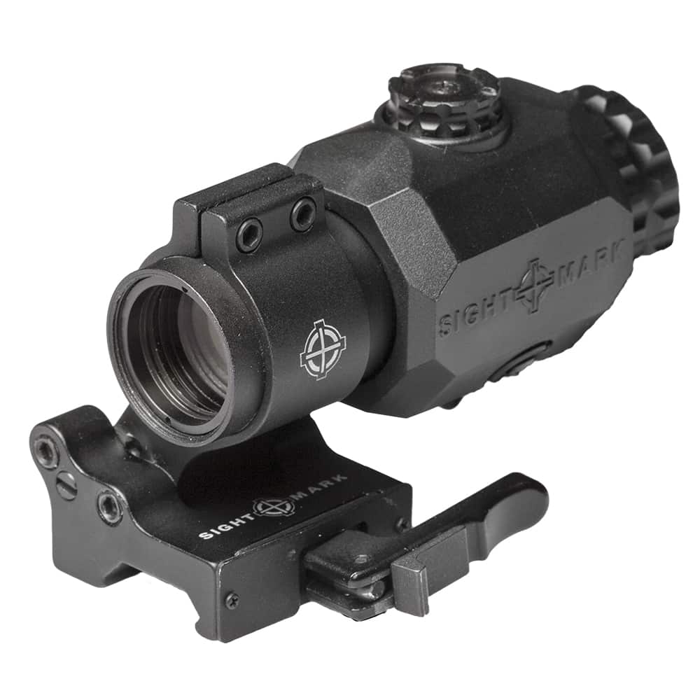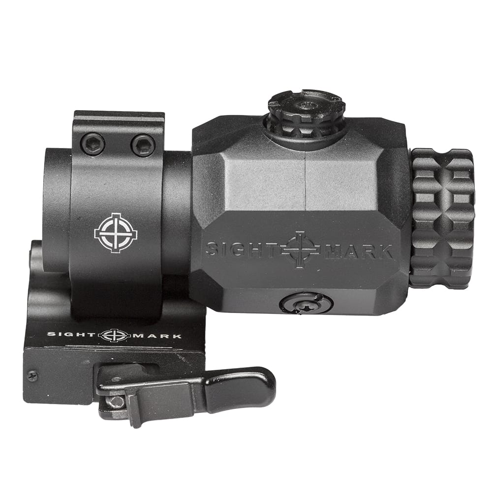 Designed specifically to improve close-range optic versatility, the new Sightmark XT-3 Magnifier adds lightning fast mid-range reach for faster, more accurate shot placement at extended ranges. The XT-3 Magnifier is compatible with Sightmark reflex and red dot sights, as well as Aimpoint? and EOTech? products, making it a perfect choice for any recreational, competition or duty AR-platform rifle. Featuring a 6061-T6 aircraft-grade aluminum tube and rubber armored housing, the shockproof, fog proof and IP67 waterproof-rated XT-3 provides durability you can trust. The XT-3?s flip-to-side mount allows rapid on-the-fly transitions from close- to mid-range targets. Ideal for target shooting, 3 gun competition or backwoods hunting, the XT-3 improves shooting comfort with a 3.5? eye relief. For intense situations when only a perfect shot will do, the XT-3 Magnifier?s fully multi-coated glass improves brightness and resolution, translating to better target and point-of-impact recognition. External adjustments allow the reticle to align to the center of the magnifier field of view, helping the overall sight picture and clarity. The Sightmark XT-3 Magnifier includes a picatinny compatible, quick-detach, flip-to-side mount. Designed to mount behind a reflex sight or red dot to increase magnification, the Sightmark XT-3 Tactical Magnifier allows shooters to engage targets at further distances with a 23mm objective lens and 3x magnification. Compact and lightweight the Sightmark XT-3 features a flip-to-side mount, providing rapid transition between your gun?s optic system, and 3.5? eye relief, improving overall comfort for shooters. External adjustments eliminat the need for tools for reticle alignment while fully multi-coated optics and rubber armored housing increase the XT-3 Magnifier?s image clarity and durability. EOTech? and Aimpoint? compatible, the Sightmark XT-3 is quickly mounted and removed via a locking, quick detach mount.