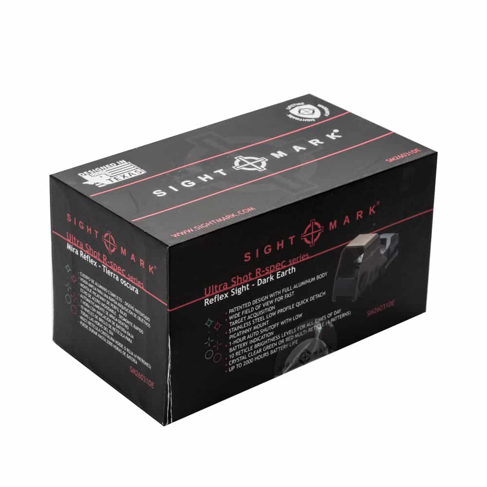 Perfectly suited for fast, accurate action at the range, the Sightmark Ultra Shot R-Spec Reflex Sight delivers a crisp field of view with an advanced, anti-reflective, scratch resistant lens system, 4 red and green reticle options with 10 brightness settings, parallax correction (beyond 25 yds.), 1 MOA click adjustments (120 MOA of travel), Interlok internal locking adjustment system and a long, reliable battery life, from 200 to 2,000 hours on a single CR123 battery. Built tough, the IP55 weather-resistant, shockproof Ultra Shot R-Spec Reflex boasts a 6061-T6 aircraft-grade aluminum body and protective shield, recoil rating up to .50 BMG and a lifetime warranty. Includes a quick-detach picatinny mount, adjustment tools, CR123A battery, operation manual and neoprene cover. The Sightmark Ultra Shot R-Spec Reflex Sight turns up the heat on your range time with ultra-fast target acquisition and seriously long battery life, from 200 to 2,000 hours on a single CR123A battery. The Ultra Shot R-Spec?s premium wide-angle lens system with scratch resistant and anti-reflective silver coating, 4 illuminated red/green reticle options with 10 brightness settings, parallax correction (beyond 25 yards) and unlimited eye relief deliver a crisp, robust field of view and uncompromising reliability. Built tough, the Ultra Shot R-Spec Reflex Sight is shock proof, IP55 weather-resistant, recoil rated up to .50 BMG and constructed of a rugged, lightweight 6061-T6 aluminum body and protective shield. 1 MOA windage and elevation adjustments, up to 120 MOA of travel, get you on target quickly and keep you there with an Interlock internal locking adjustment system, for precise, repeatable shooting from any range your comfortable shooting at 1x magnification. The Ultra Shot R-Spec Reflex Sight also features a low battery indicator, digital switch controls, 1-hour auto shut-off, quick-detach picatinny mount and Sightmark?s lifetime warranty. ?Includes adjustment tools, CR123A battery, operation manual and neoprene cover.