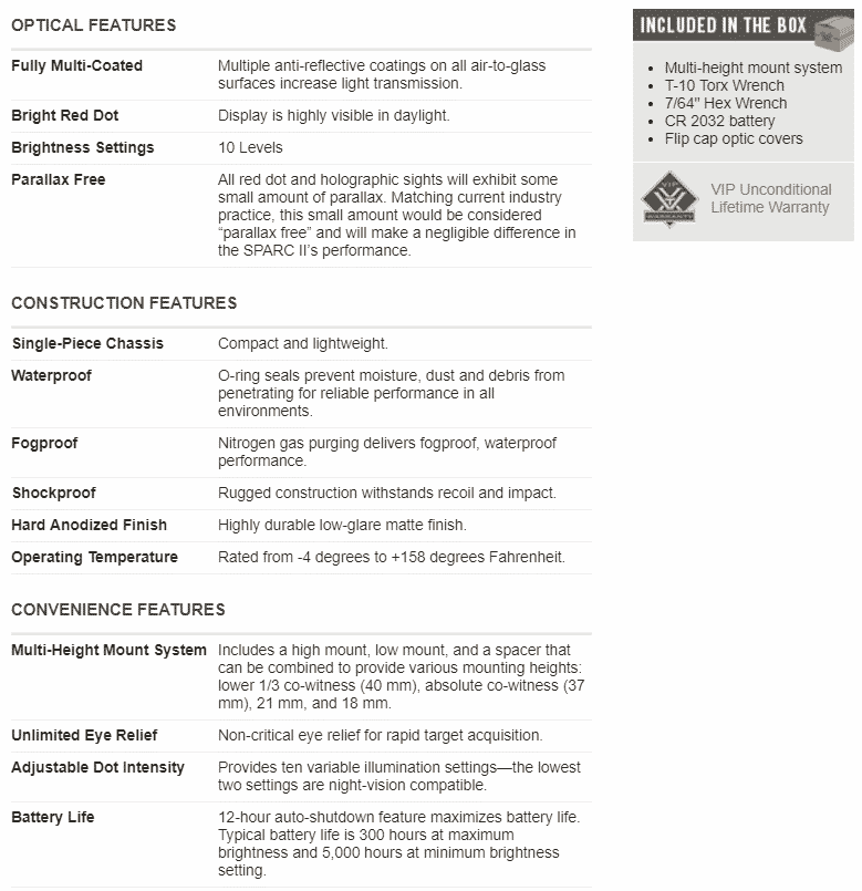SPC-402 Vortex Optics SPARC II 2 MOA Bright Red Dot