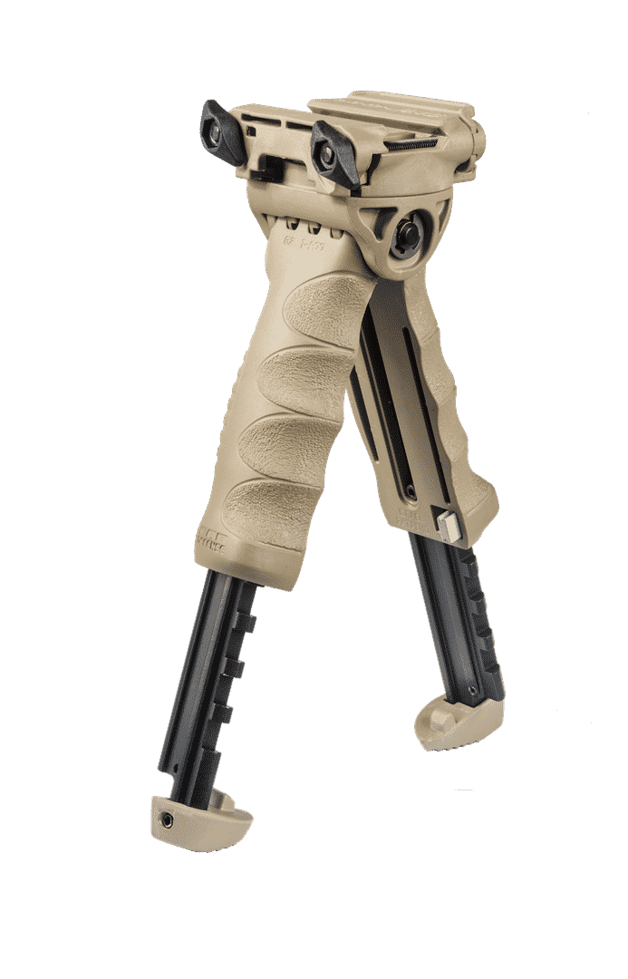FAB's new uniquely designed T-POD-G2 Rotating Tactical Foregrip & Bipod transforms foregrip into a fully functional Bipod by the push of a button