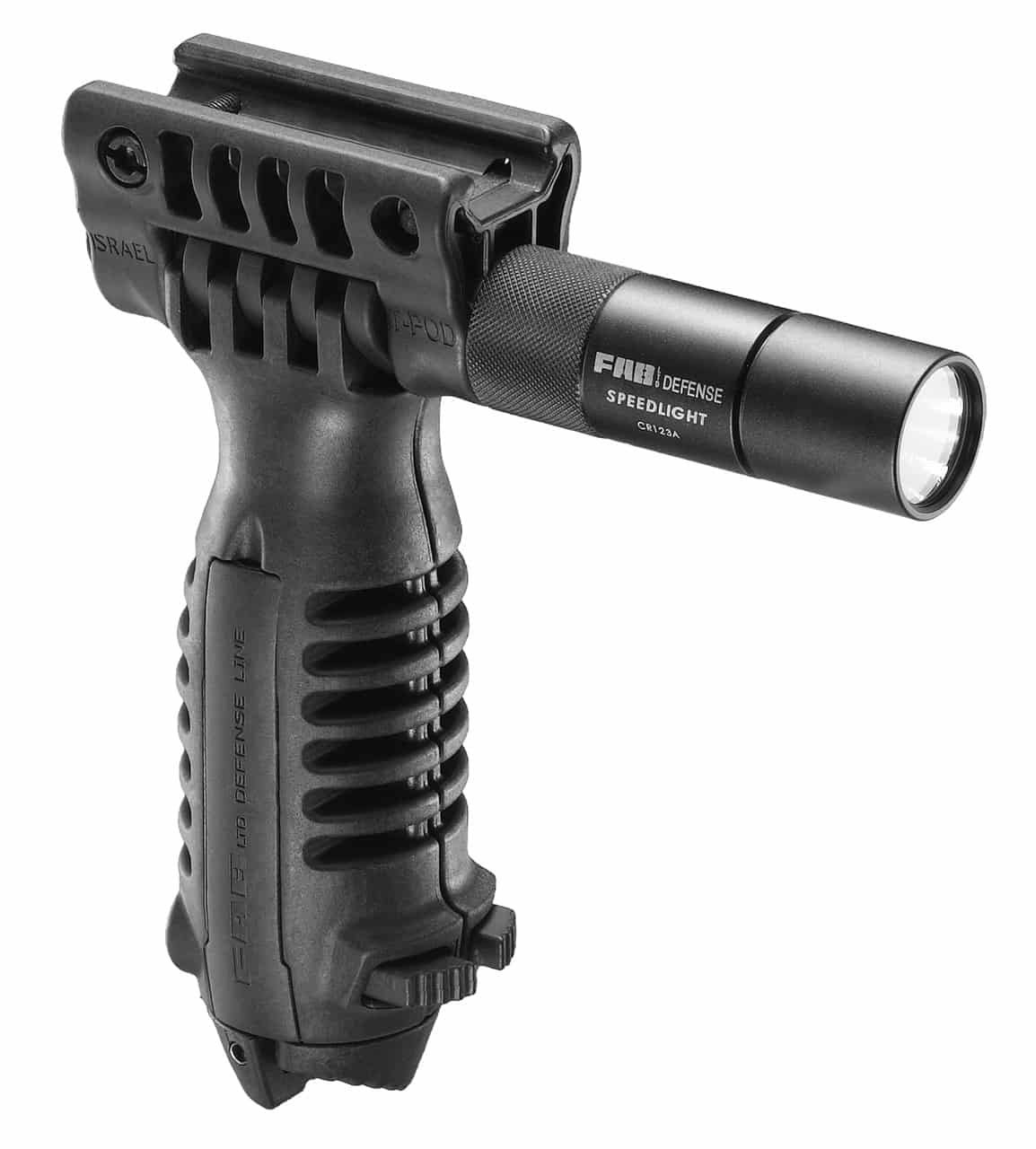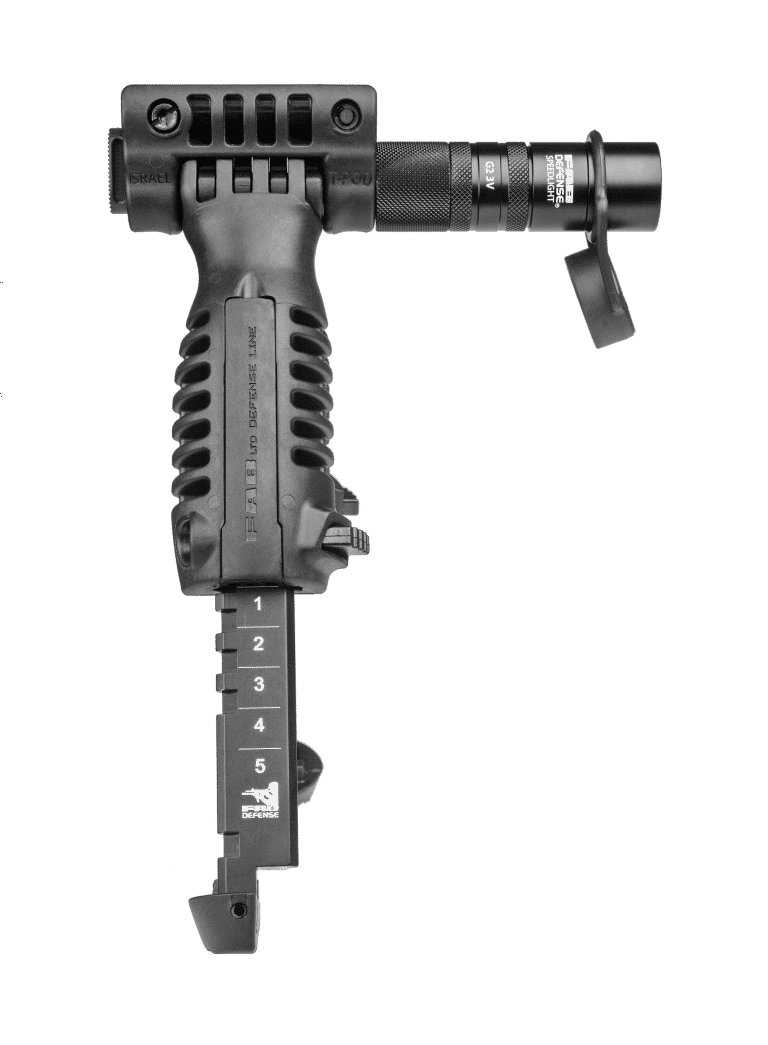 Integrates a foregrip, Bipod, and button - activated light mount for any 1? light with a tailcap switch an ergonomic foregrip based on our popular TAL-4 grip