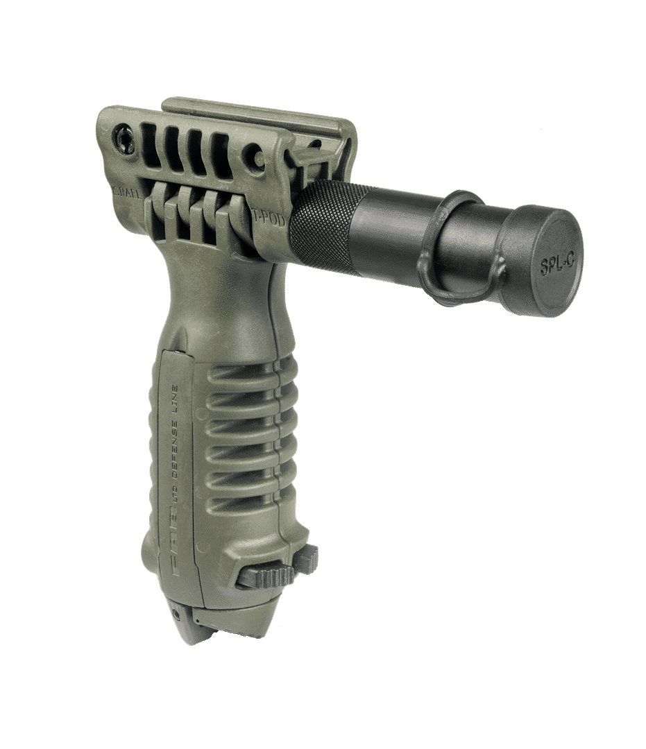 The T-POD SL incorporates a built-in 100 lumen tactical weapon light, combines three essential accessories in one compact lightweight unit.
