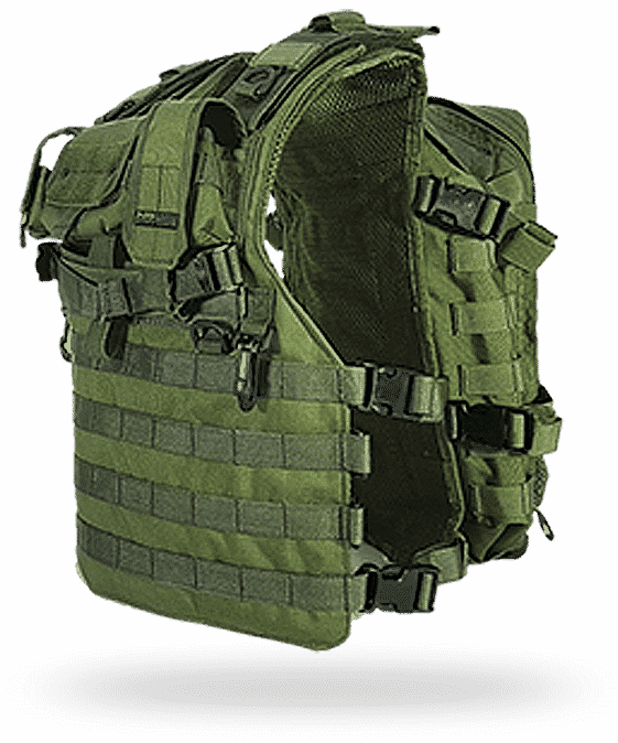 The Fully Modular Tactical Vest was designed to allow the user full freedom in configuring the vest with pouches. It is also recommended for combatants using a LMG or a MAG.